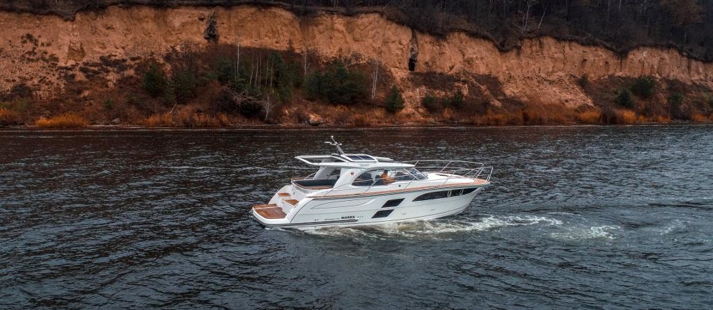 BATEAU NEUF SUR COMMANDE Le Marex 360 Cabriolet Cruiser est un croiseur à cabine ouverte avec l'un des plus grands cockpits convertibles de sa catégorie. Aucun bateau de moins de 40 pieds n'offre un cockpit plus grand que le nouveau Marex 360 CC. Les solutions les plus populaires du modèle précédent - 350 Cabriolet Cruiser ont été reconnues, développées et intégrées dans ce nouveau et grand modèle. Où passez-vous votre temps sur le bateau ? En supprimant un salon sous le pont et en économisant de l'espace pour un plus grand cockpit, ce bateau est conçu pour ceux qui passent peu de temps sous le pont. Nous nous concentrons sur l'optimisation de l'espace dans le cockpit. Il est étonnant que 10 personnes puissent être accueillies à table. Le luxueux coin salon est l'endroit idéal pour discuter ! Grâce aux innovations spatiales modernes, il existe également des espaces de rangement étanches sous les sièges. Une porte pratique dans le pare-brise permet un accès rapide, sûr et facile au pont avant. Les protections latérales généreuses de 28 cm de large permettent également de se promener facilement autour du bateau. Un poste de pilotage bien pensé et un excellent tableau de bord assurent une conduite confortable, tandis que le spacieux siège triple copilote garantit une expérience passionnante pour toute la famille. Le bateau a une plate-forme de bain courte ou longue. Prix de base avec moteur de base, TVA 8.1% incluse, départ usine = EUR 414'060.00 Nous sommes à votre disposition pour de plus amples informations et informations sur la longue liste d'options.