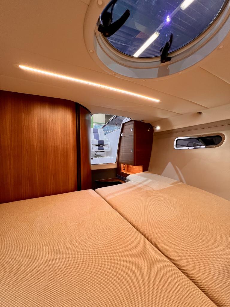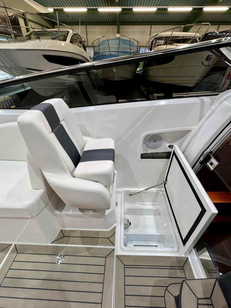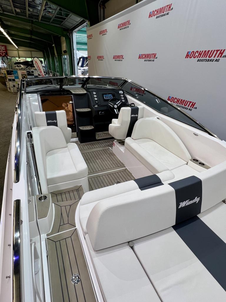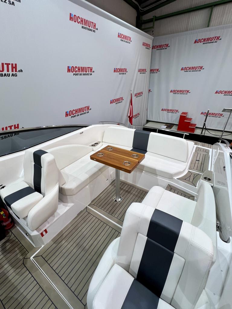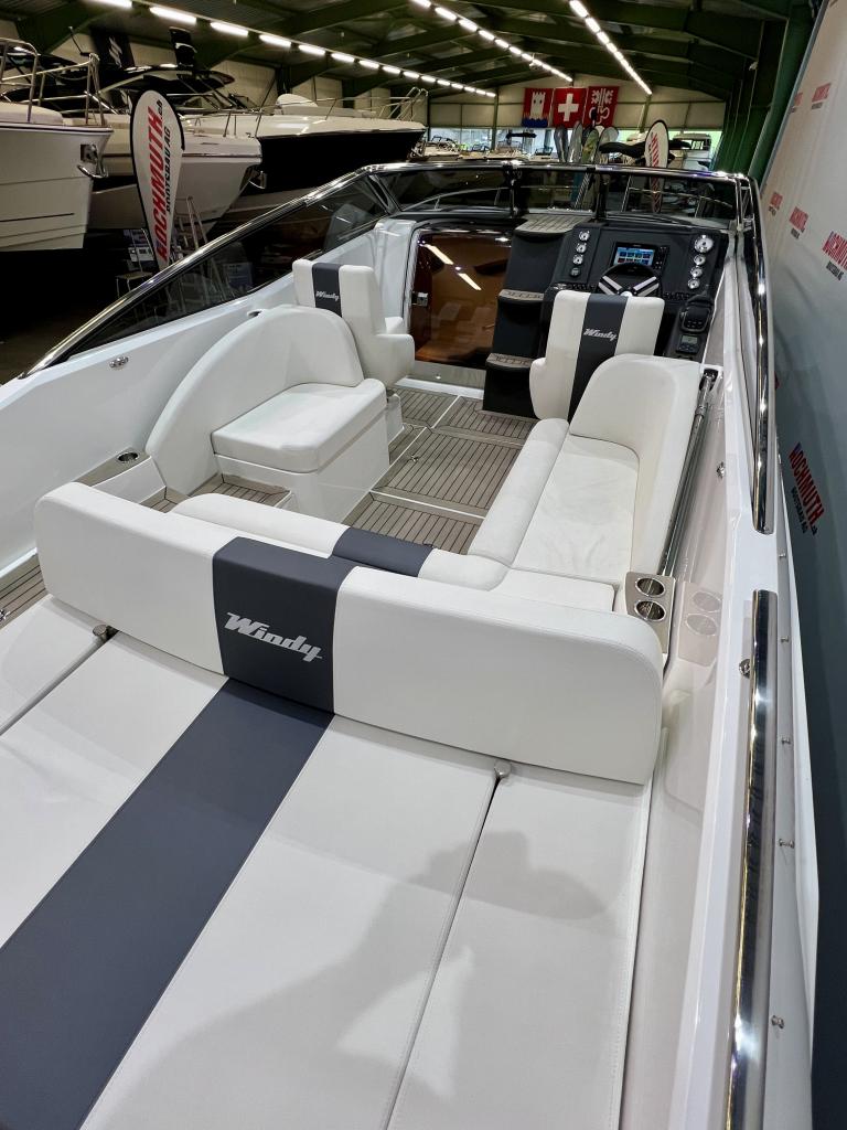 Détails : Couleur de la coque blanche Sellerie blanche avec bande grise Tableau de bord Nextel gris foncé Avec un style rétro classique et les performances et la maniabilité imbattables pour lesquelles Windy est réputé, le bateau de sport 27 Solano est prêt à imiter le succès du légendaire 31 Zonda. Imprégné de l'ADN de base de Windy, le Solano célèbre la navigation de plaisance, dans le style et le confort du 21e siècle, en mettant l'accent sur un grand cockpit, une excellente coque et une excellente maniabilité. Voici le sportboat pur et sans fioritures du type Windy construit dans les années 60 et 70, mais avec un confort, un design et une technologie au goût du jour. Guindeau, complet avec ancre et chaîne en acier inoxydable Bimini Propulseur d'étrave SE40 complet Compteur de chaîne Taud de port en bâche Humphree Interceptors X-300 avec fonction Auto Trim et Auto List Eclairage du fond du cockpit Eclairage de la plate-forme de bain Réservoir à matières fécales avec aspiration au-dessus du pont Prise de quai, 220V avec chargeur de batterie Interface Flexiteek dans le cockpit Flexiteek sur la plateforme de bain Transport usine - Stansstad / CH Forfait de livraison Bateau (397J223) - Total y compris 8.1 % TVA = CHF 258'793.00 En option: peinture antisalissure sous-marine CHF 4'423.00 Demandez nos places d'amarrage uniques dans le Tessin ensoleillé. Profitez du climat méditerranéen et de l'atmosphère détendue pendant que vous amarrez votre bateau en toute sécurité et confortablement dans l'une des meilleures marinas du Tessin. Le point de départ parfait pour des moments inoubliables de ''dolce vita'' sur le Lac Majeur. Nous vous proposons aussi volontiers une place d'amarrage couverte adaptée sur les lacs du Jura, avec le plus grand confort possible. Situé sur le canal de la Broye, entre les lacs de Neuchâtel et de Morat, vous partez du point de départ idéal pour explorer le plus grand bassin de sports nautiques de Suisse. Vous trouverez de plus amples détails sur cette installation unique en Suisse sur notre site Internet. Pour de plus amples informations sur nos places d'amarrage, nous nous tenons également à votre disposition par téléphone.