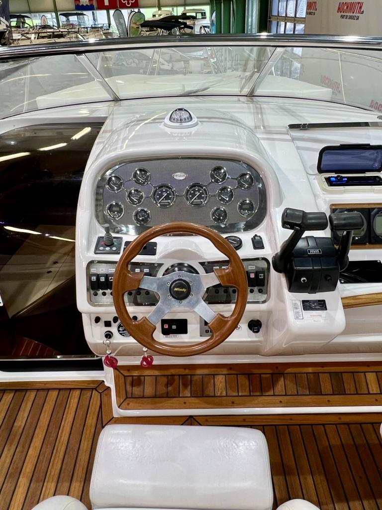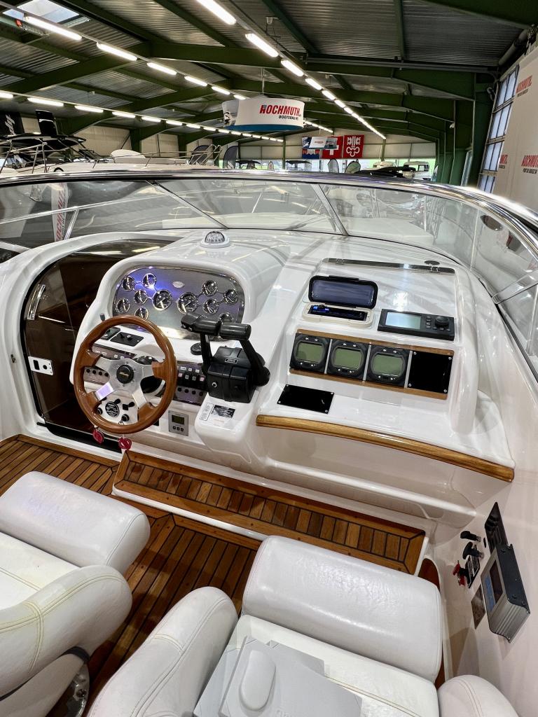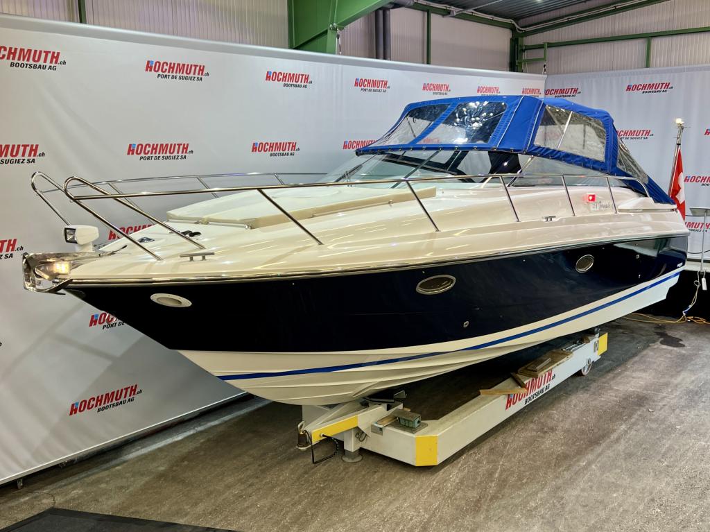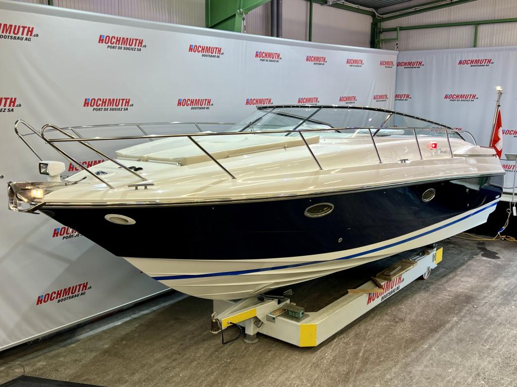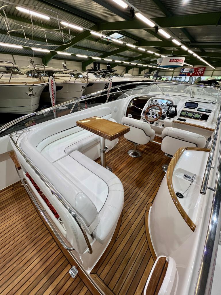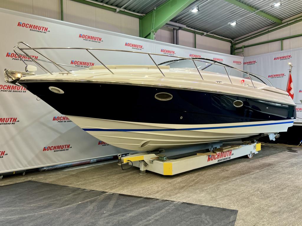The Windy 31 Tornado is arguably the most beautiful combination of sports boat and cruiser. It impresses with a spacious cockpit that features a sun lounger at the stern, a fold-out table and swivel seats. The cabin with separate wet room offers sleeping space for up to four people. And all this in the typical Windy design DNA with its sporty, elegant lines. We look forward to welcoming you to our large showroom soon and showing you the Windy 31 Tornado in person. Position light Instrument lighting Bow light Cabin lighting Cockpit lighting Swimming platform lighting Windscreen wipers Cooker Radio/CD Charger 230V sockets Hour meter Water tank gauge Holding tank system with suction via deck Holding tank gauge Compass Full tarpaulin Canopy Toilet Stern shower Electric windlass 2 refrigerators (cabin and cockpit) Teak cockpit Teak bathing platform Very spacious seating area Underwater paint 220V shore power connection Boiler Bow mat Bow thruster Anchor light Chrome steel mast Boat equipment From service From MFK Boat (1054) - Total incl. 8.1% VAT = CHF 82'000.00 Ask about our unique moorings in sunny Ticino. Enjoy the Mediterranean climate and relaxed atmosphere while mooring your boat safely and comfortably in one of the best marinas in Ticino. The perfect starting point for unforgettable ''dolce vita'' moments on Lake Maggiore. We are also happy to offer you a suitable indoor mooring on the Jura lakes with the highest possible level of comfort. Situated on the Broje Canal, between Lakes Neuchâtel and Murten, this is the ideal starting point for exploring Switzerland's largest water sports area. Further details about this unique facility in Switzerland can also be found on our website. For further information on our moorings, please do not hesitate to contact us by telephone.